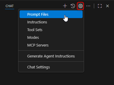 Prompt files are used to define reusable prompts and can be installed in the user profile or in the .github/prompts folder - Chat Modes