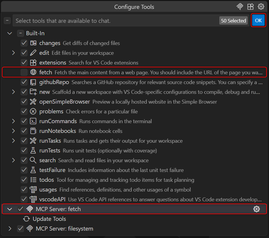 In this section we will cover how to add MCP servers to Visual Studio Code and the usage of tools.