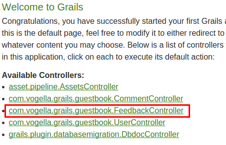 grails create-domain-class com.vogella.grails.guestbook.Feedback